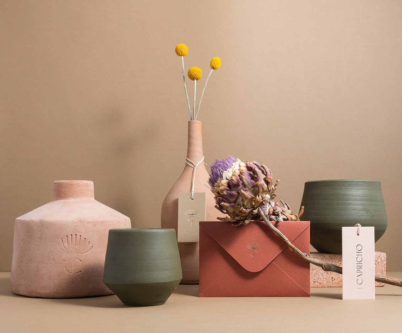 Handicraft is a multidisciplinary space that combines different materials and techniques to create useful decorative objects based on organic and handmade elements. Create a new brand logo, including stationery, communication and packaging design. The purpose of the graphic design concept is to reflect certain influences of its cultural roots by setting exquisite and modern accents. Blowing dandelions has magical connotations. This is a symbol of fulfilling a wish. Each part of its fragile seeds and cotton seeds dissolves and flows in the air freely and delicately in the beautiful scene, which represents this desire.